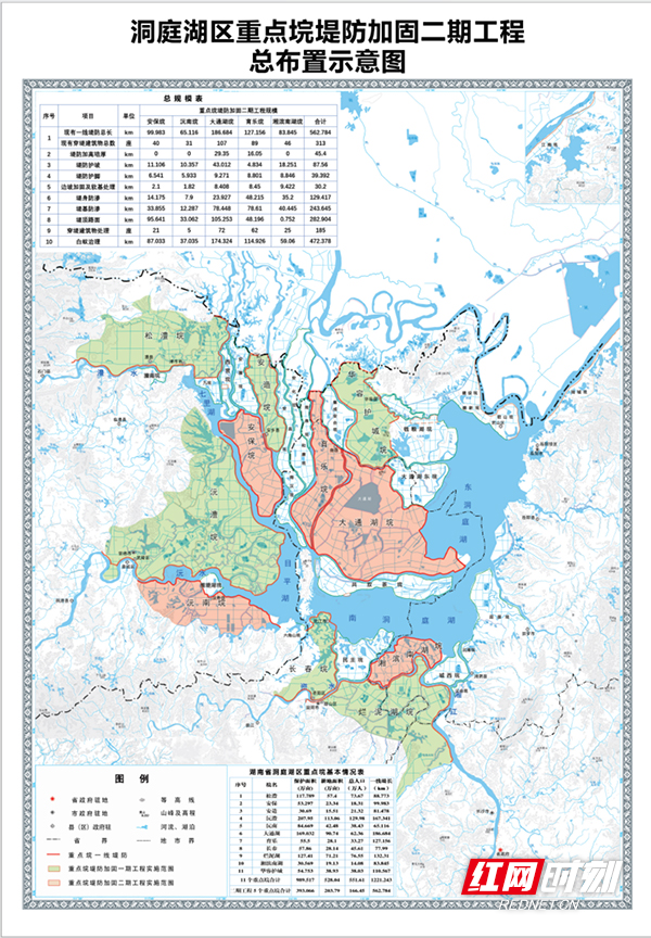 洞庭湖区重点垸堤防加固二期工程总布置示意图。