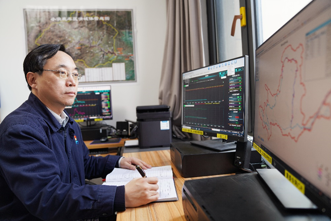 小浪底水利枢纽管理中心水量调度处处长李鹏在开展调度工作。受访者供图