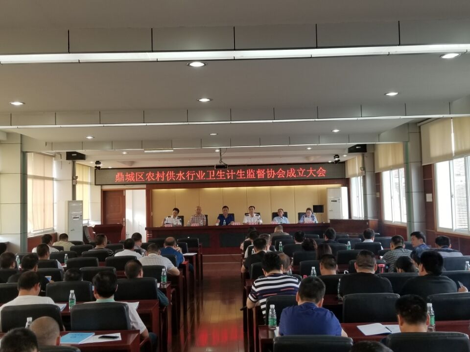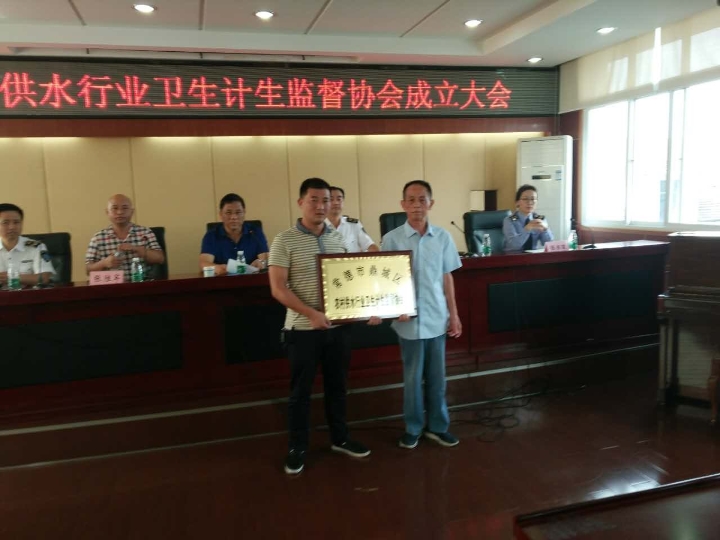鼎城区农村饮水管理站负责人曾文学主持会议并讲话,会上区卫生计生监督协会会长伍育明宣读《关于鼎城区农村饮水安全供水协会加入区卫生和计生监督协会监督管理的批复》,并为新成立的区农村供水行业卫生计生监督协会授牌。协会旨在提高农村水厂经营业主的业务水平和安全卫生意识,保障农村供水水质合格。主要职能是开展卫生计生法律、法规的宣传,普及法律法规知识,提高农村供水行业卫生计生法律意识;组织供水行业会员开展卫生标准、卫生规范及操作流程的培训、交流工作;开展农村供水水质的监管。