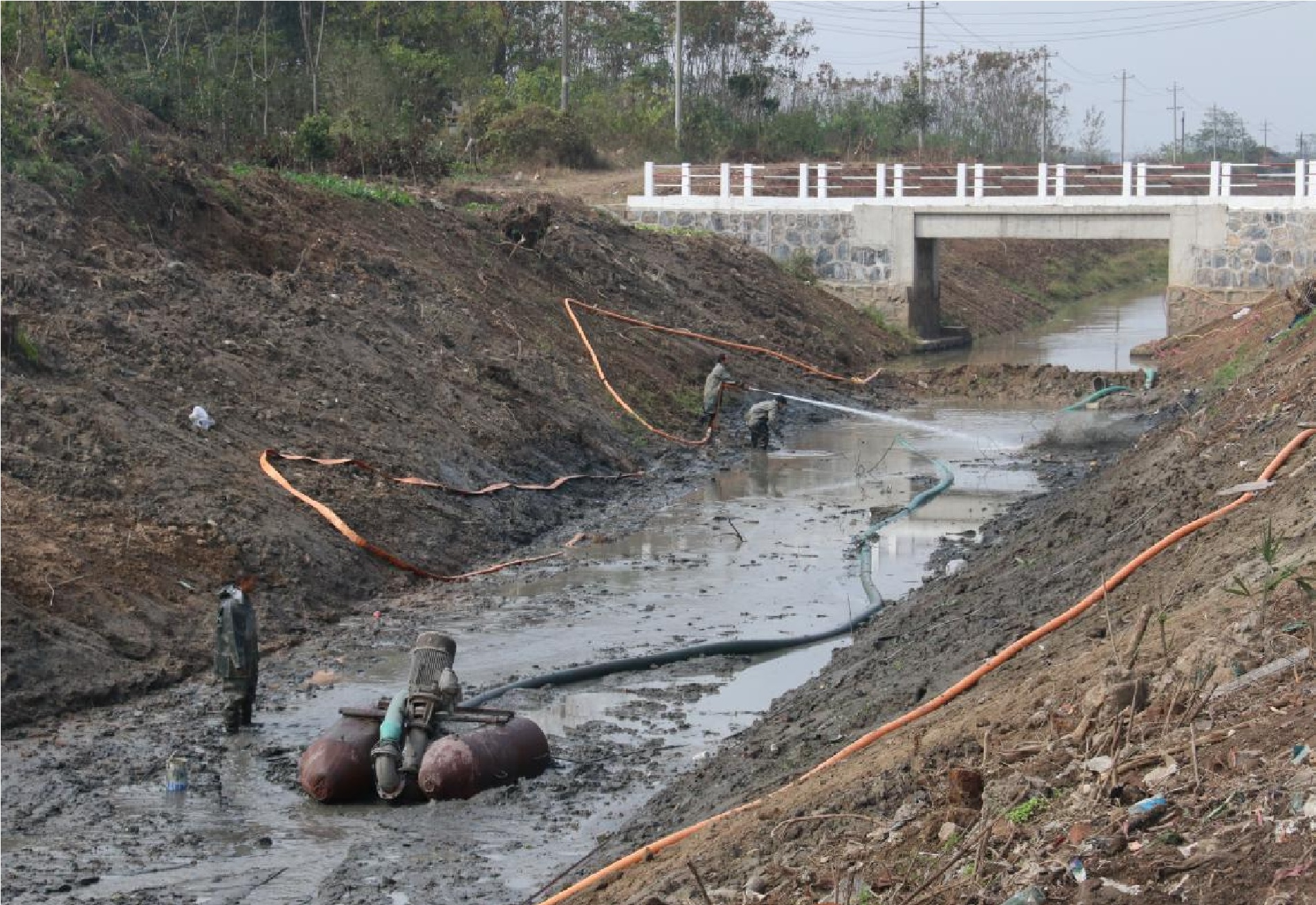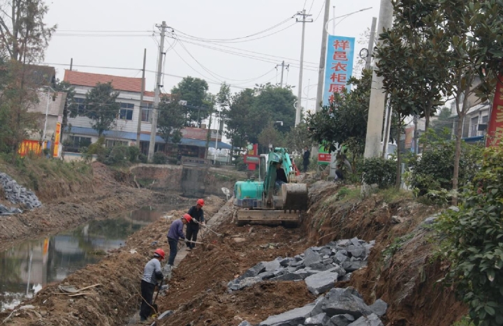 武陵区新坡渠清淤增蓄工程施工中