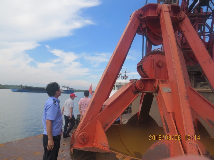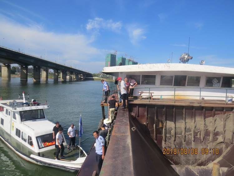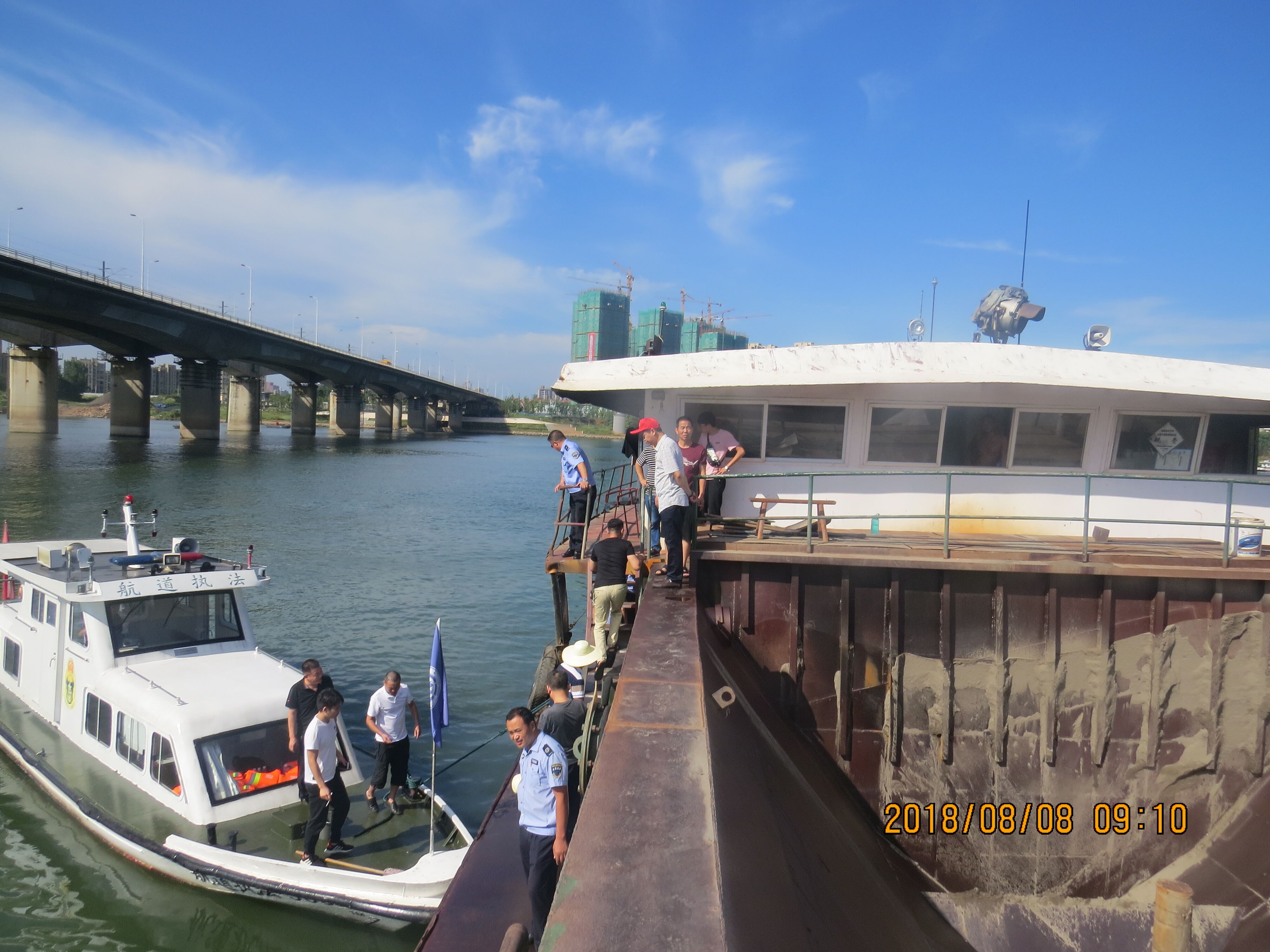 2018年8月8日,由市砂管办牵头,组织协调市水政监察支队、武陵区、鼎城区、汉寿县水政监察大队及公安、海事、航道和新闻媒体记者近40人,采用“前三角”突击队形,从沅水市城区黄金阁码头启航,途经牛鼻滩、贺家山、周文庙、汉寿县岩汪湖湿地保护区展开地毯式巡查,共发现“三条”非法吸(吊)砂船只,依照属地管理原则,均已现场交办,厉打击非法盗采行为。