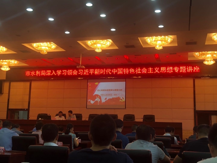 近日,市水利局组织开展“深入学习领会习近平新时代中国特色社会主义思想”专题讲座。市水利局第七党支部全体党员参加学习,作为支部8月的主题党日活动,大家积极参与、认真学习。此次讲座邀请了常德市委市直机关工委常务副书记董明辉主讲。董书记讲话中强调:“党的初心和使命是需要长期奋斗的。”