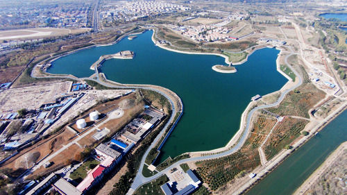 2014年4月4日,习近平总书记来到位于北京市海淀区南水北调团城湖调节池的植树点参加首都义务植树活动。当时正在建设中的团城湖调节池,连接密云水库、南水北调两大水源,是北京市南水北调配套工程的重要组成部分。总书记关心调节池施工的进展,也关心南水北调水源的水质与保护。