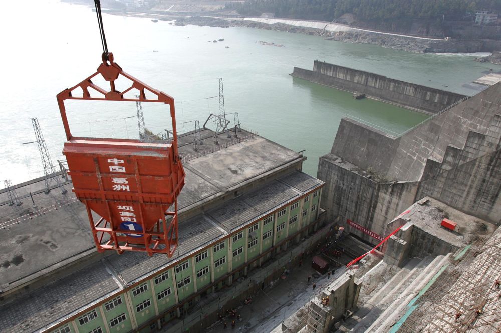 南水北调中线工程水源丹江口大坝加高工程施工现场。(2005年11月25日摄) 新华社发(陶德斌 摄)