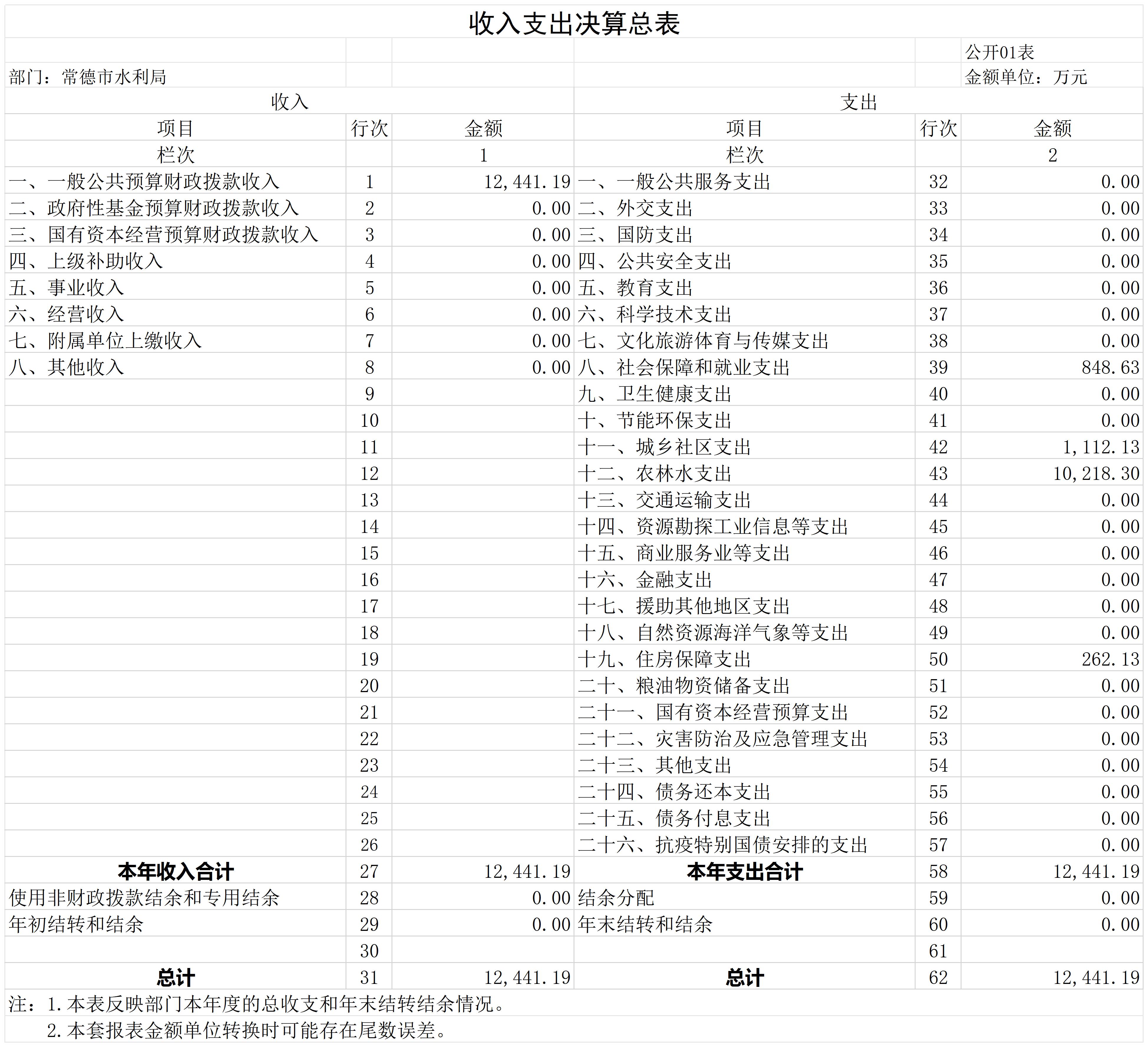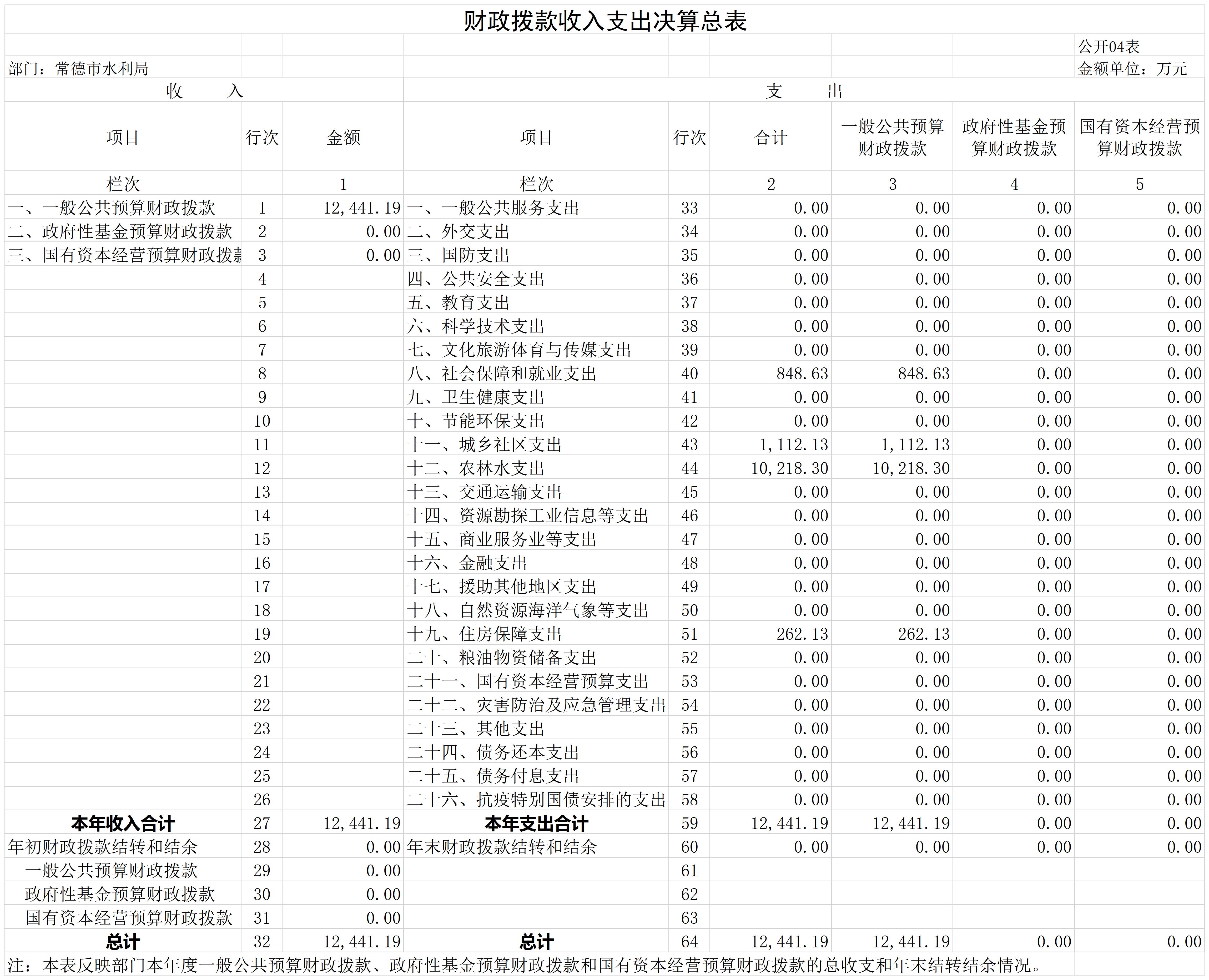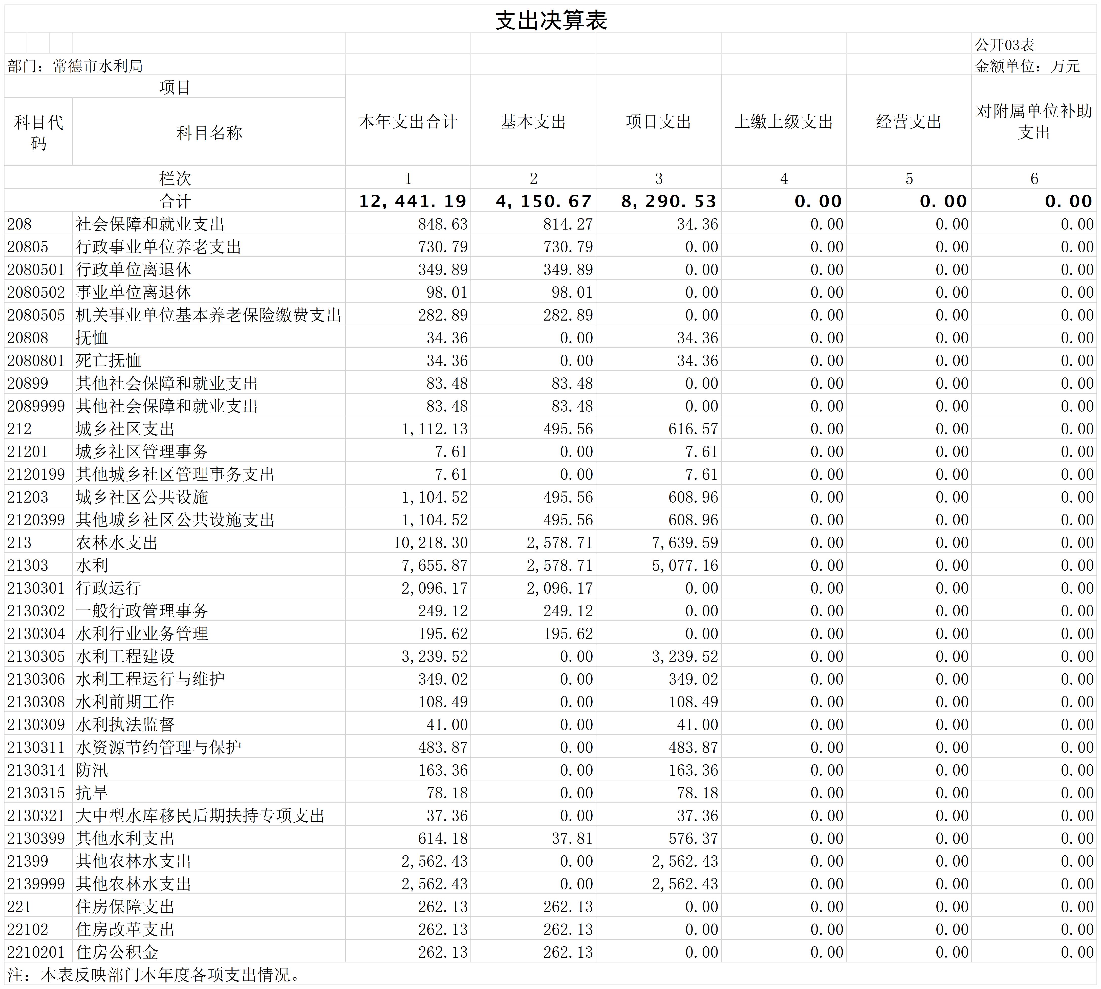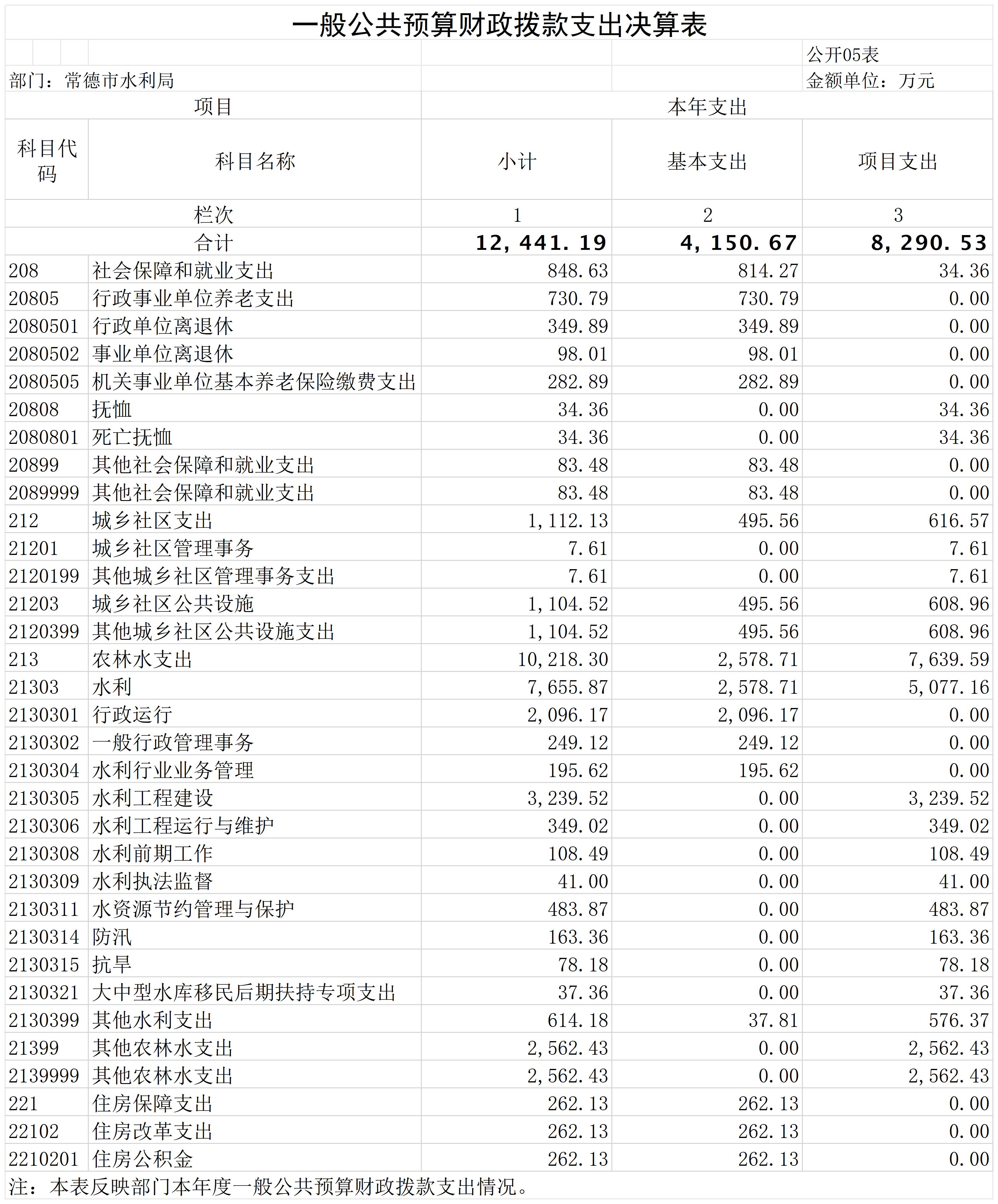 常德市水利局2023年部门决算公开