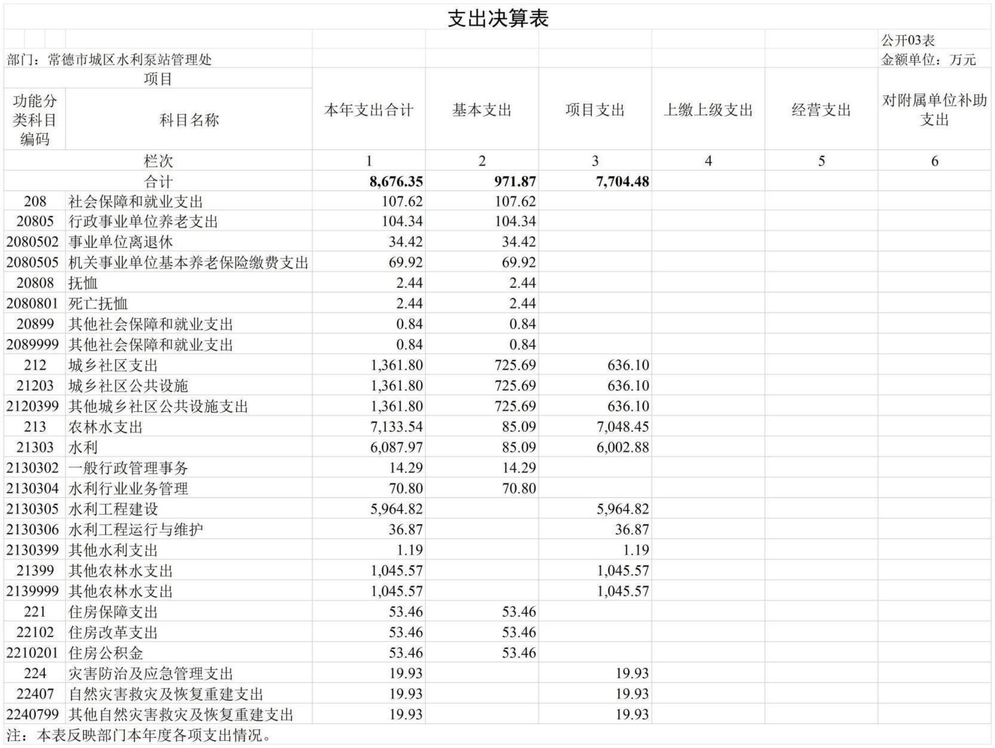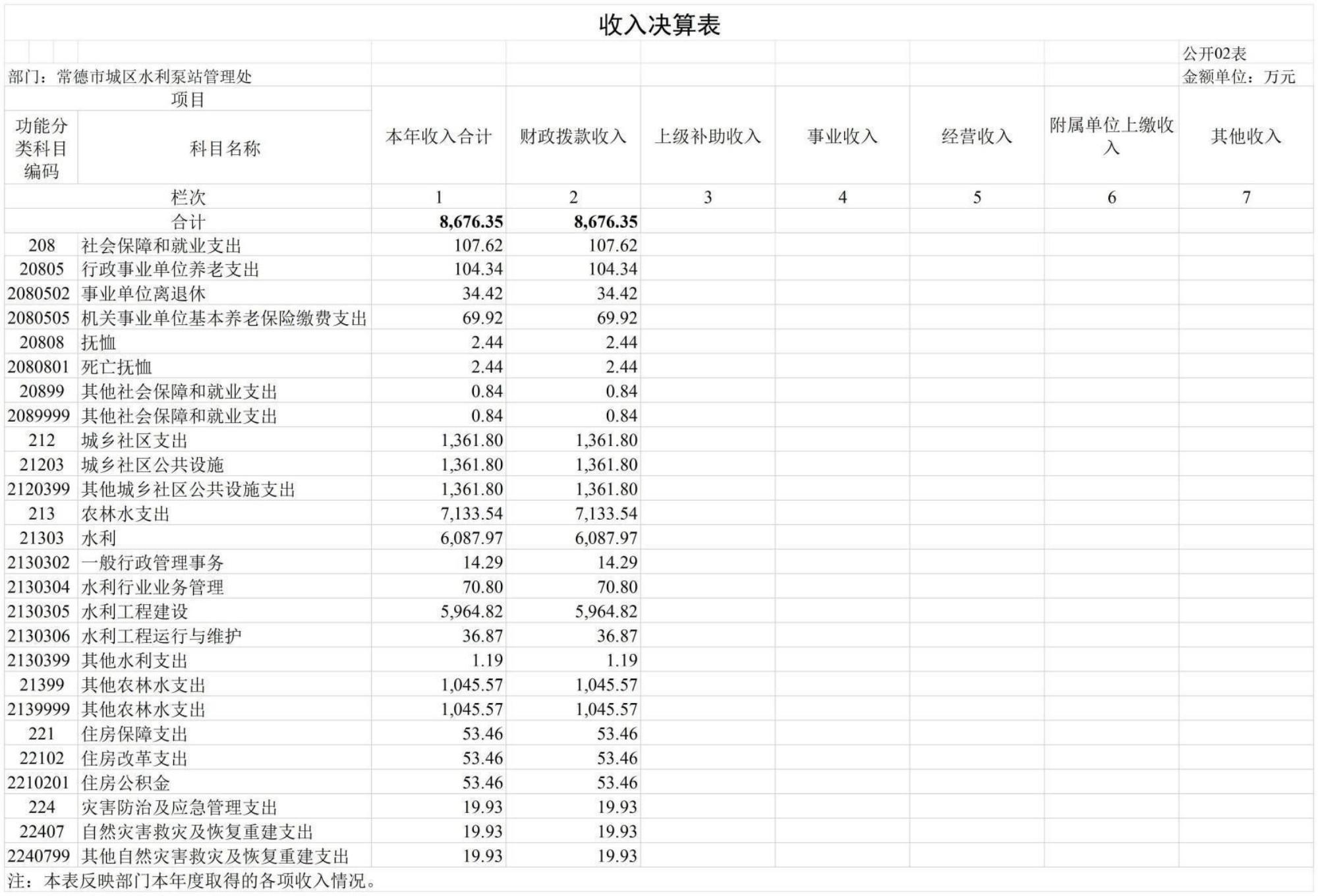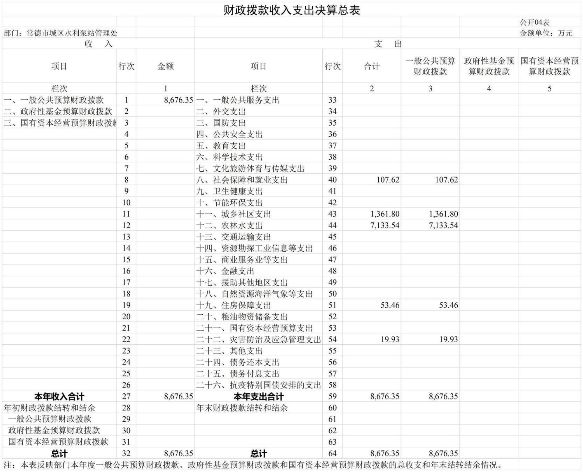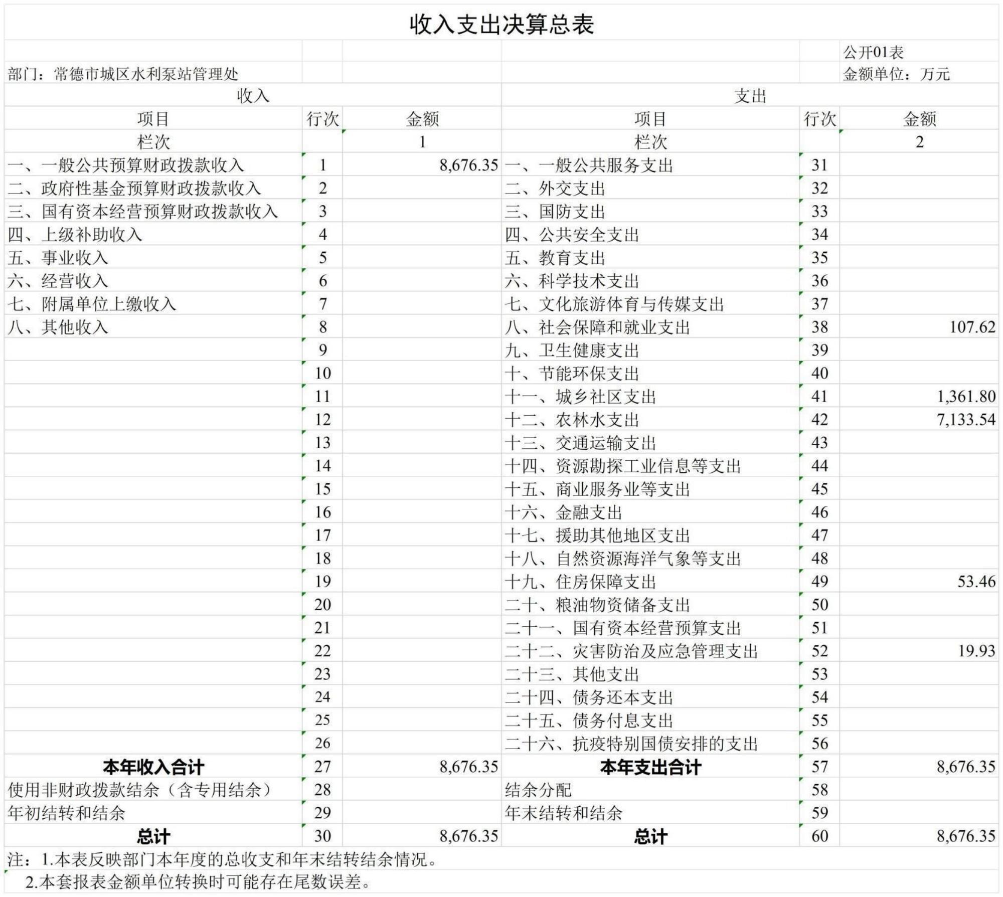 202 4 年度收 入 总计 8676.35 万元。与上年相比,增加 1935.92 万元,增长 28.72 %,主要是因为 南碈泵站改扩建工程和河洑泵站建设工程增加专项资金 。 支出 总计 8676.35 万元。与上年相比,增加 1935.92 万元,增长 28.72 %,主要是因为 南碈泵站改扩建工程和河洑泵站建设工程增加专项资金 。