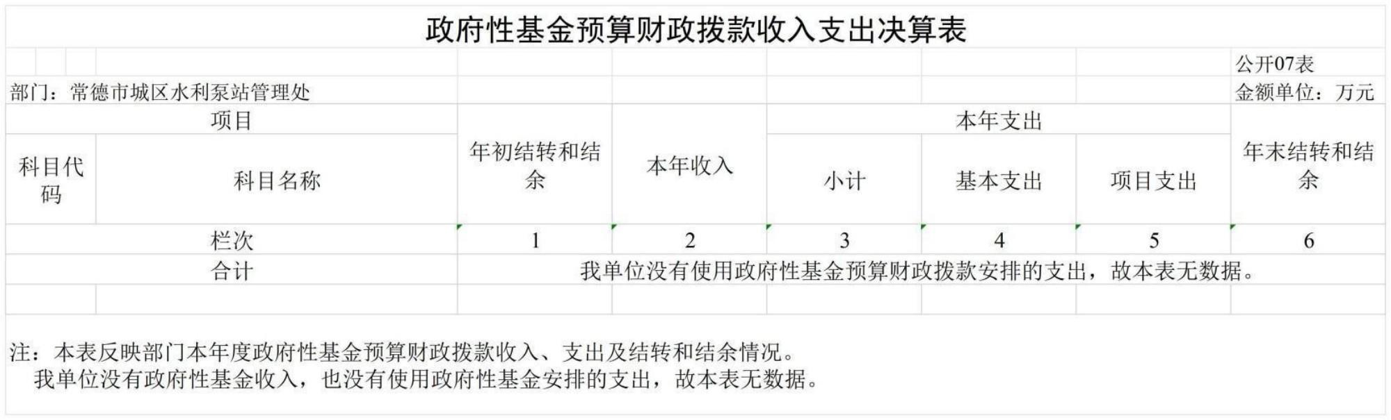 (二)决算单位构成。 常德市城区水利泵站管理处 202 4 年部门决算汇总公开单位构成包括: 本单位无所属二、三级预算单位,故2024年部门决算编制范围的为 常德市城区水利泵站管理处本级。