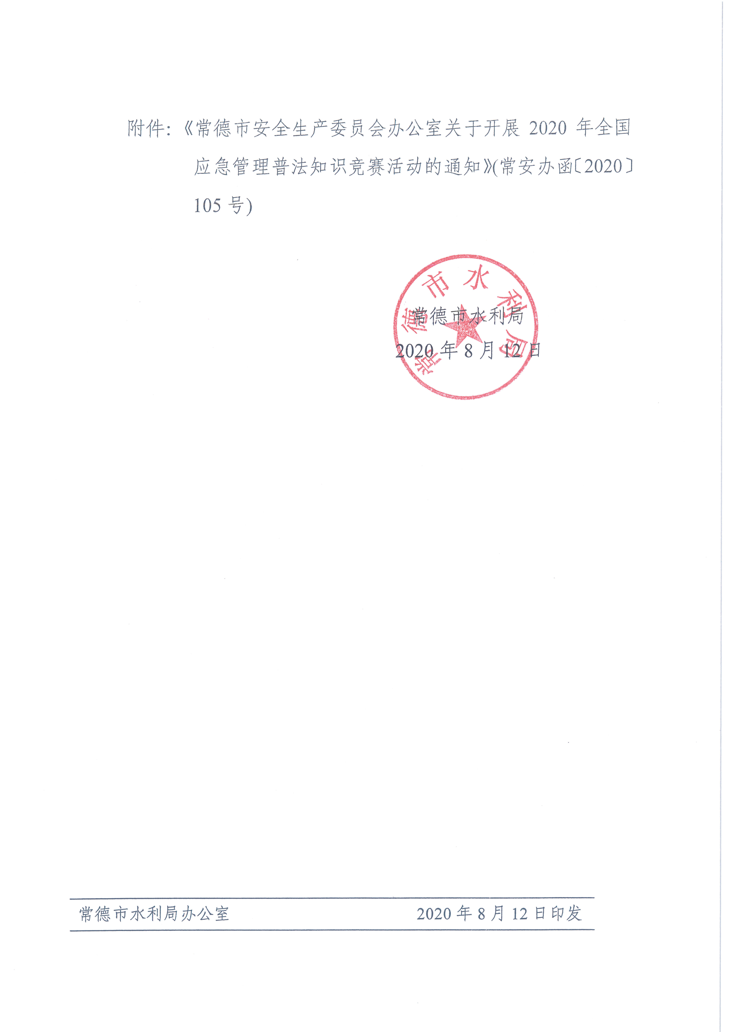常德市水利局关于转发《常德市安全生产委员会办公室关于开展2020年全国应急管理普法知识竞赛活动的通知》的通知