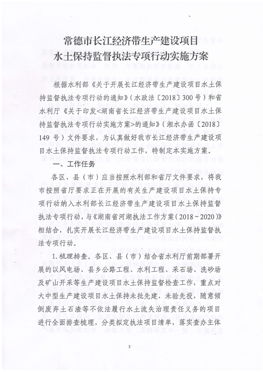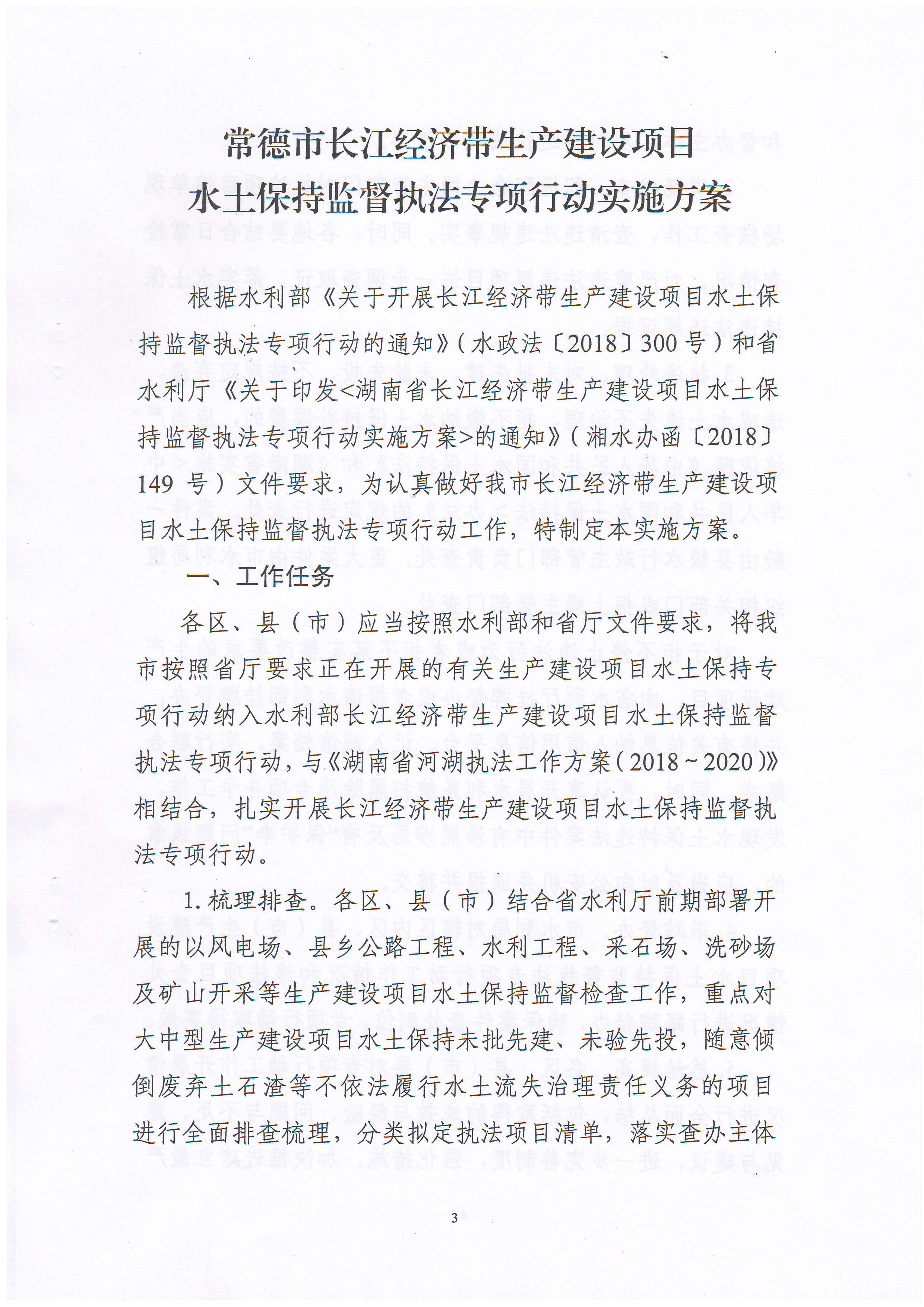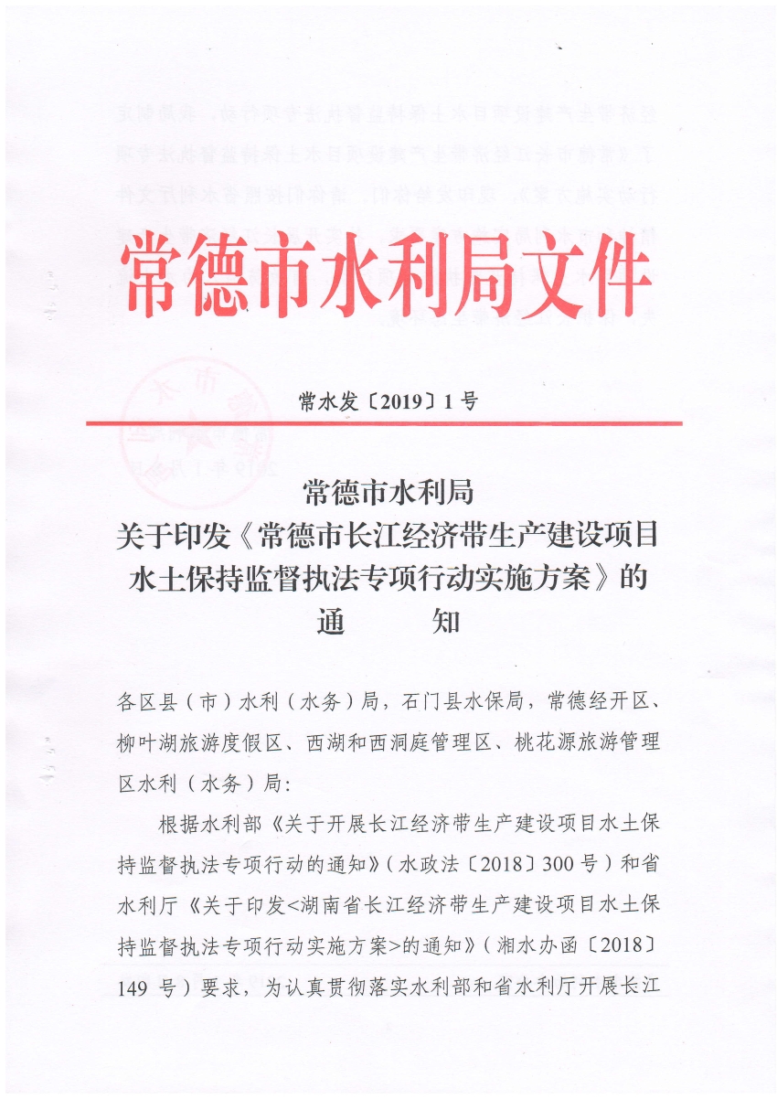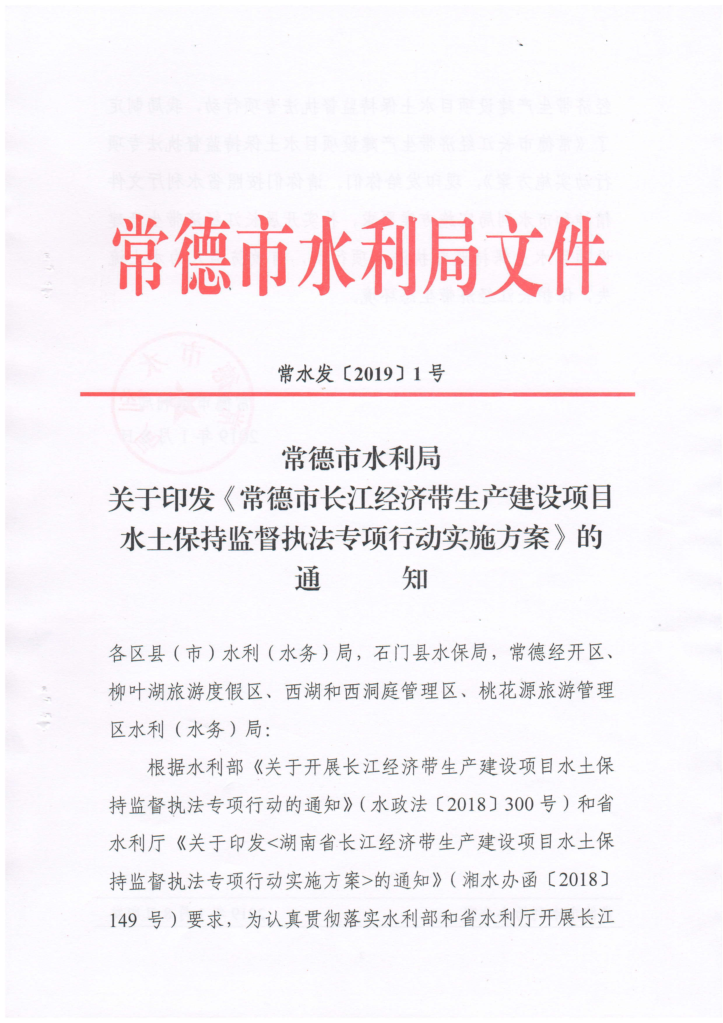 常德市水利局关于印发《常德市长江经济带生产建设项目水土保持监督执法专项行动实施方案》的通知
