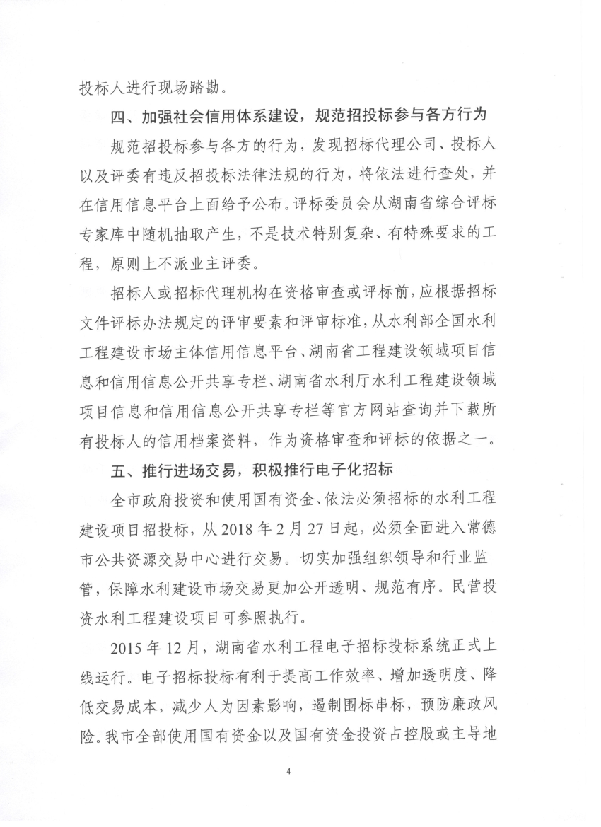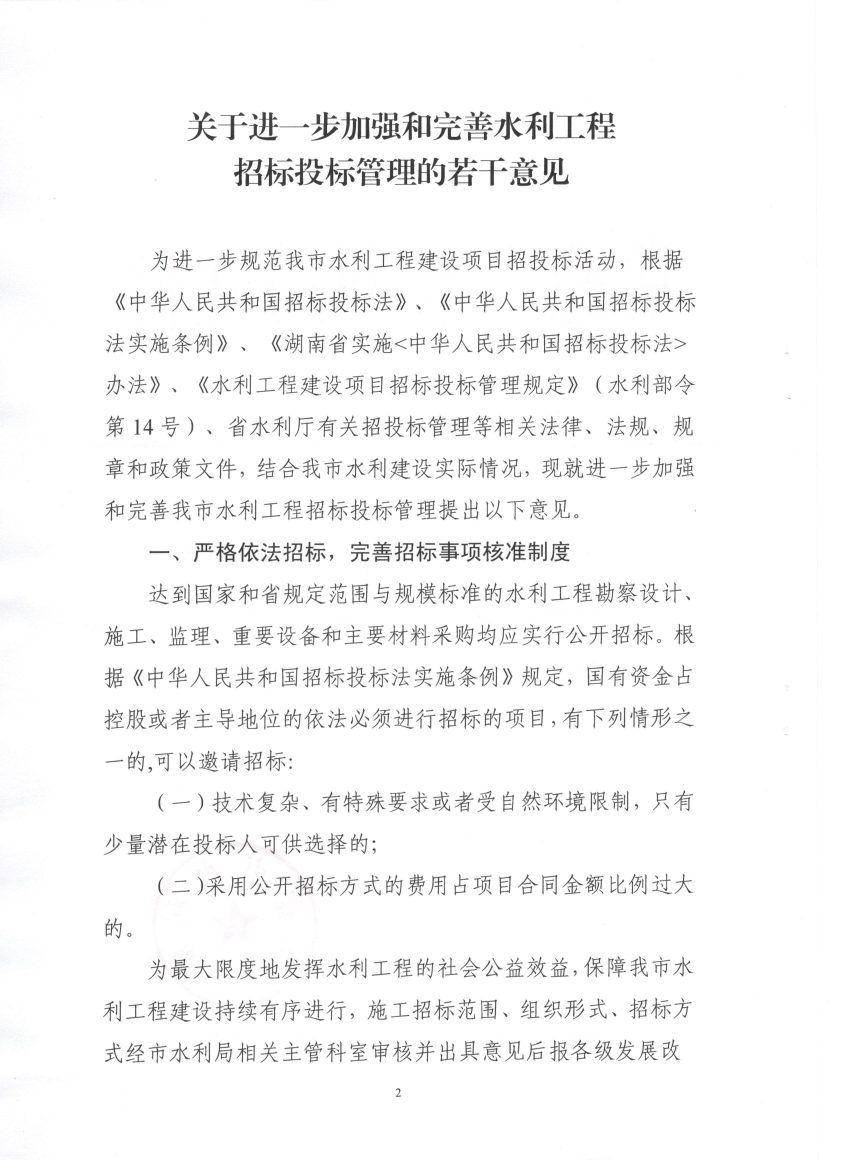 常德市水利局关于印发《关于进一步加强和完善水利工程招投标管理的若干意见》的通知