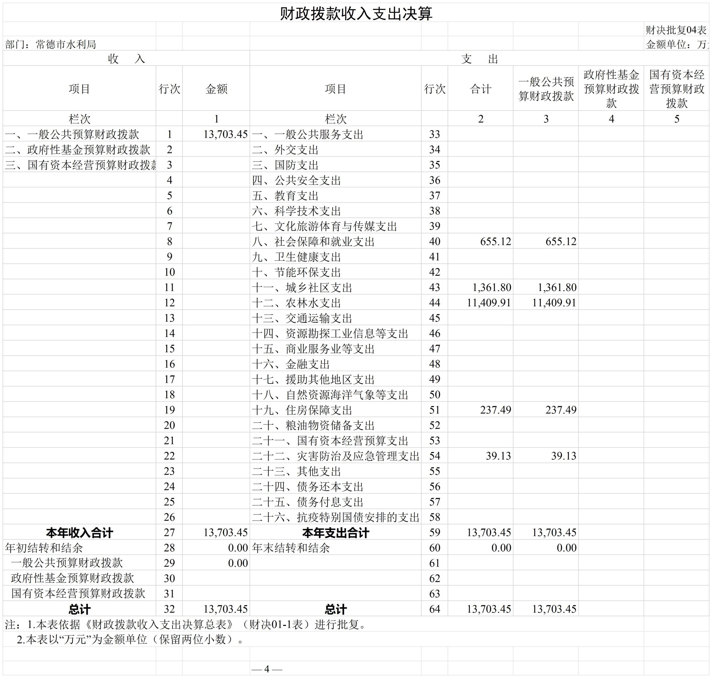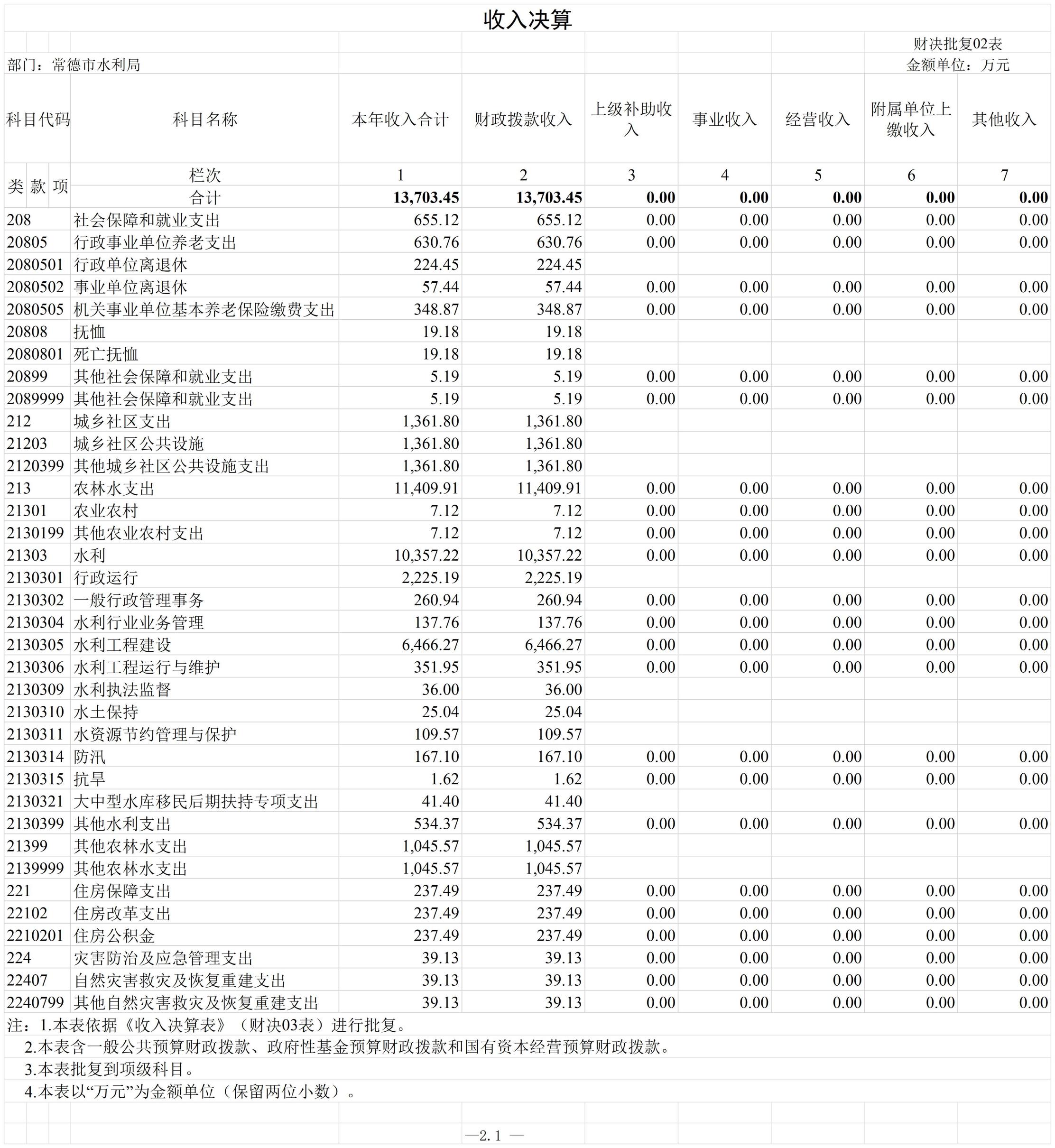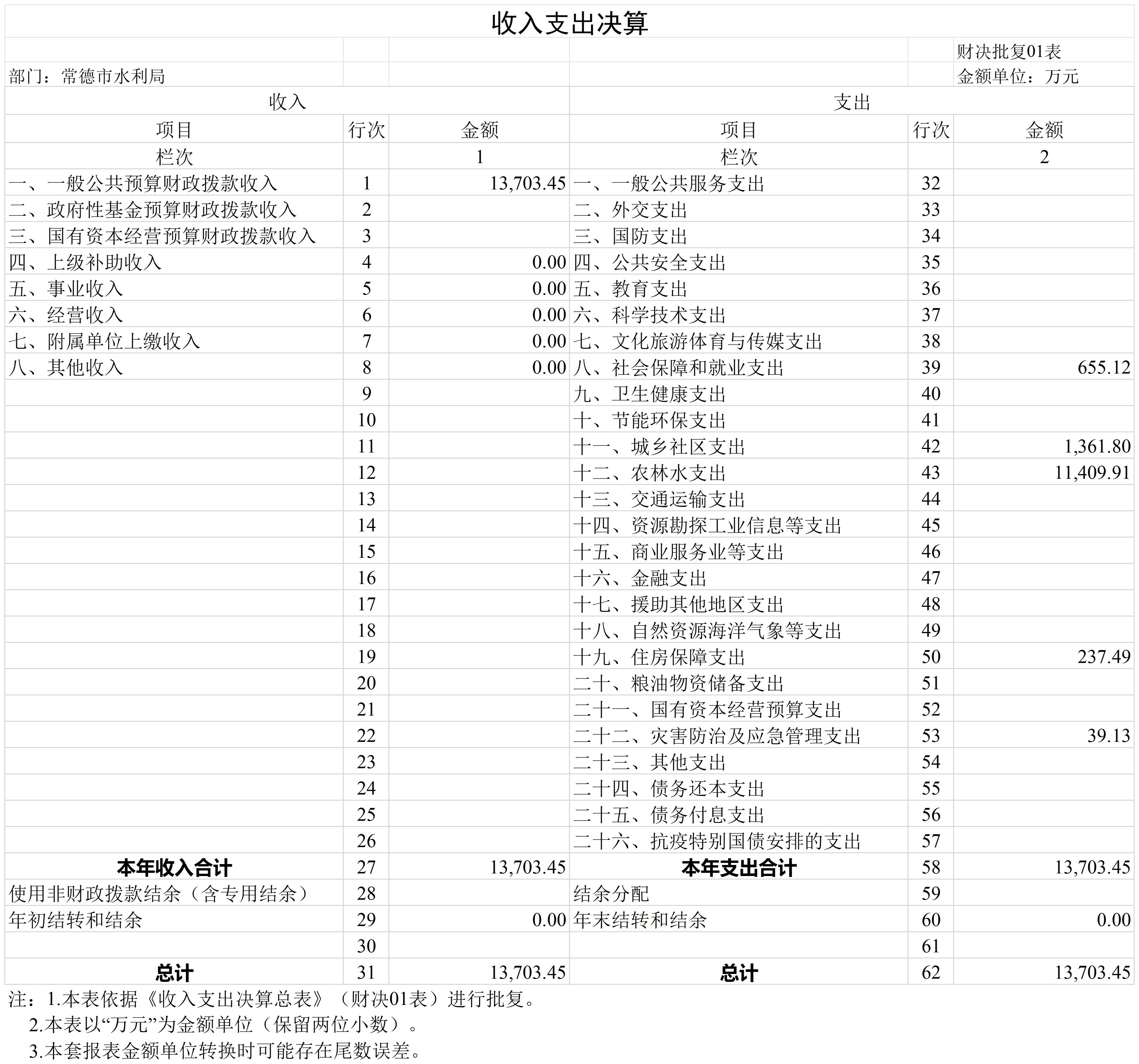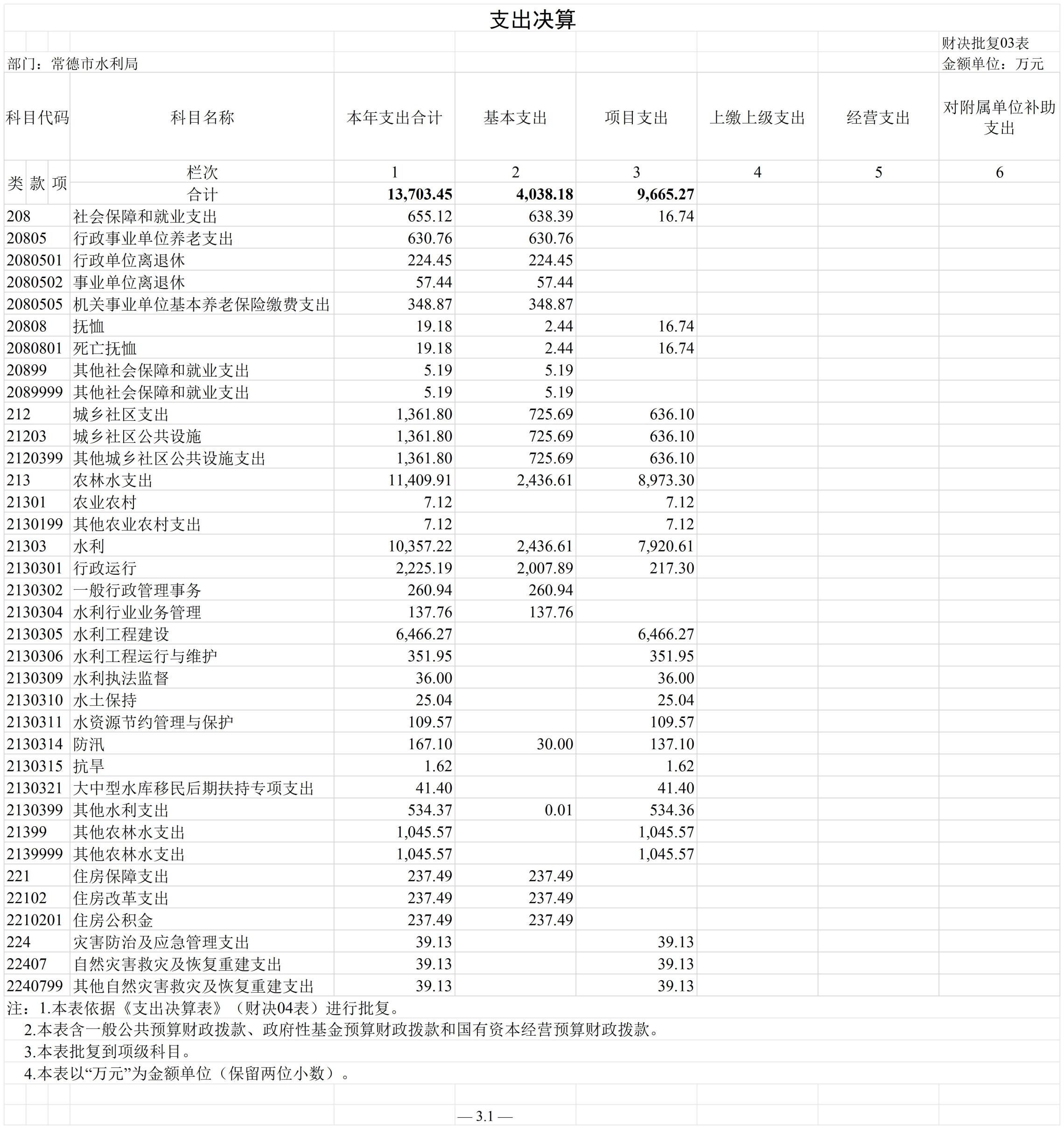 (二)决算单位构成。本单位2024年部门决算汇总公开单位构成包括:常德市水利局本级以及常德市江北城区防洪工程建设管理处与常德市城区水利泵站管理处。