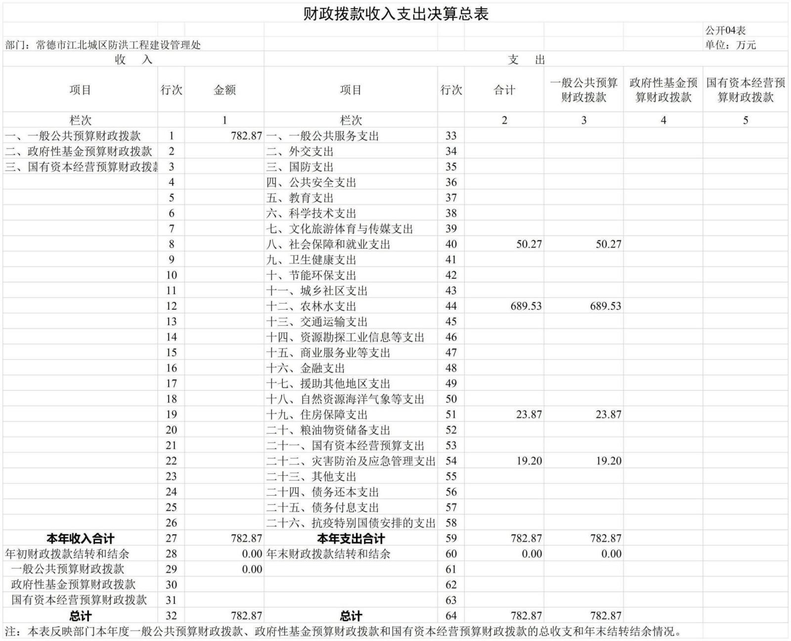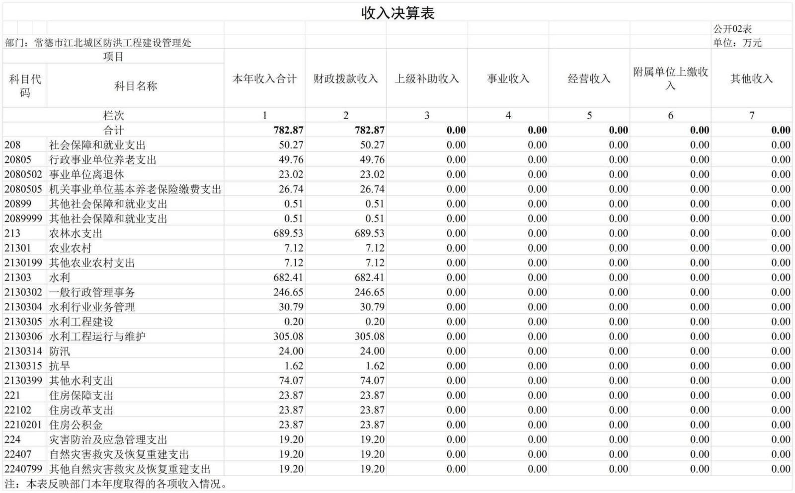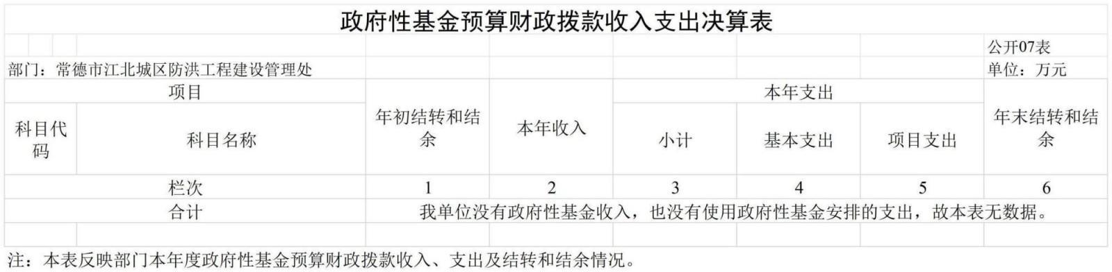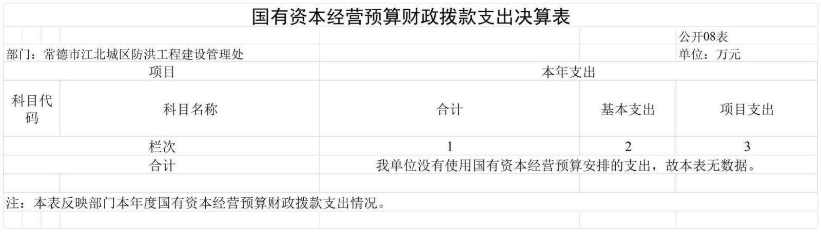 (二)决算单位构成。本单位2024年部门决算汇总公开单位构成包括:本单位无所属二、三级预算单位,故2024年部门决算编制范围的为常德市江北城区防洪工程建设管理处单位本级。