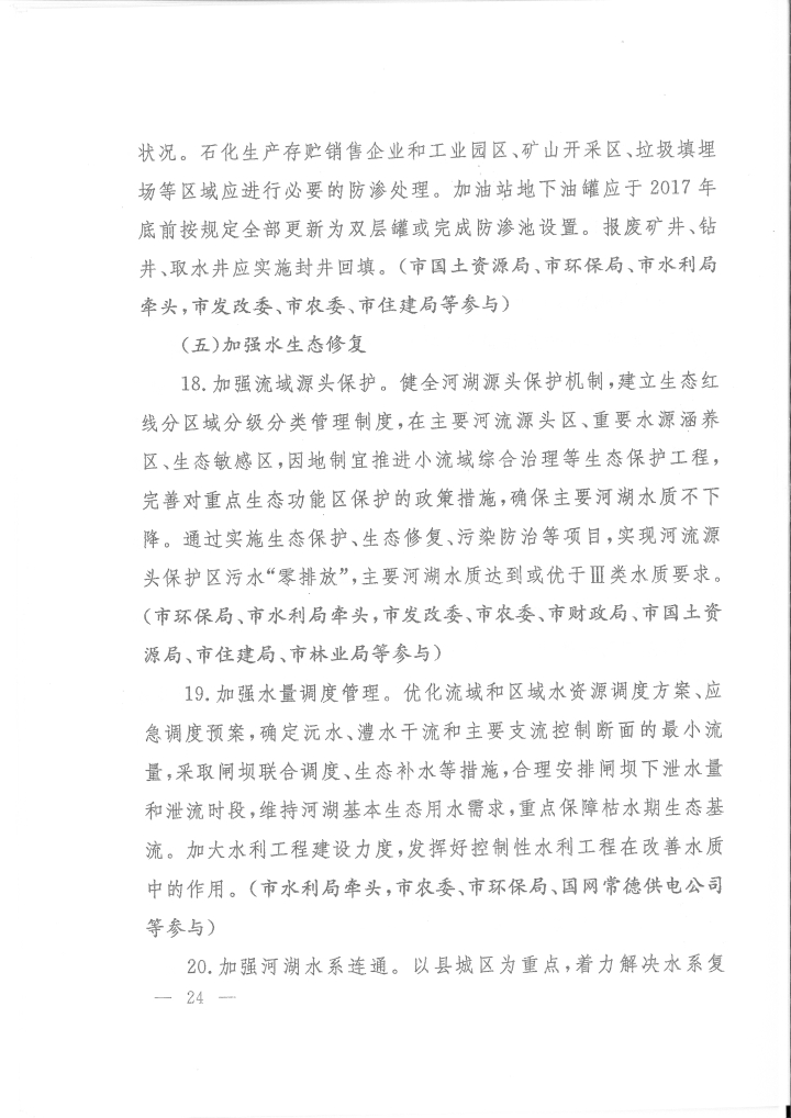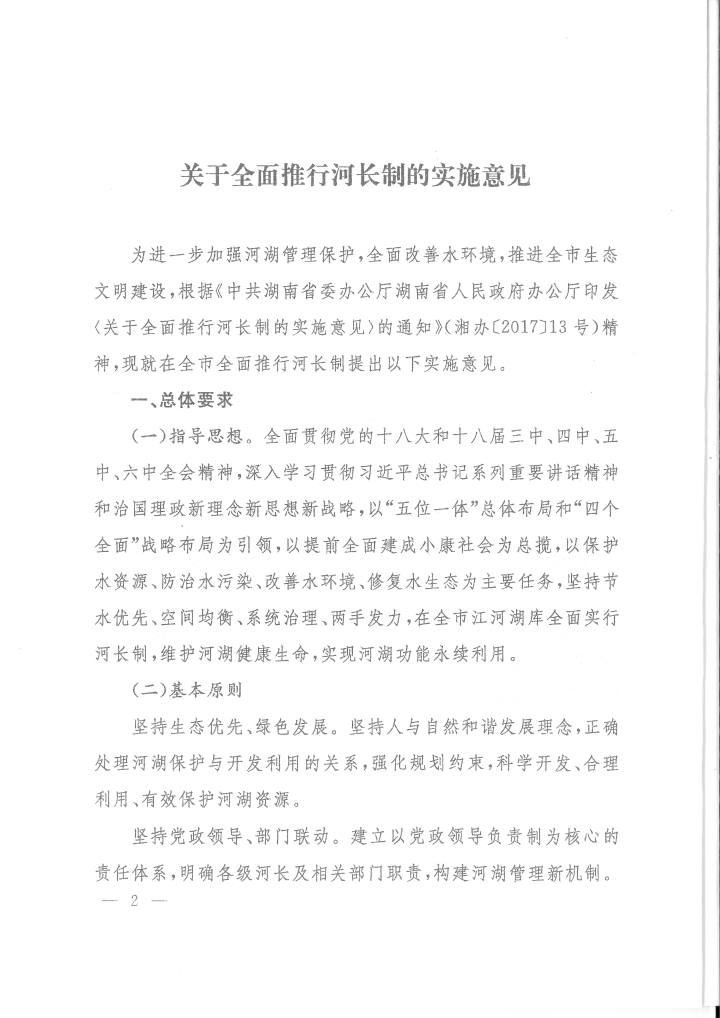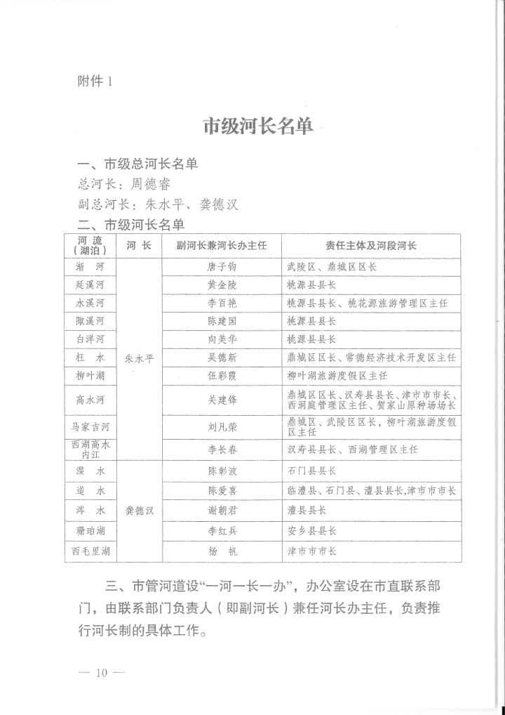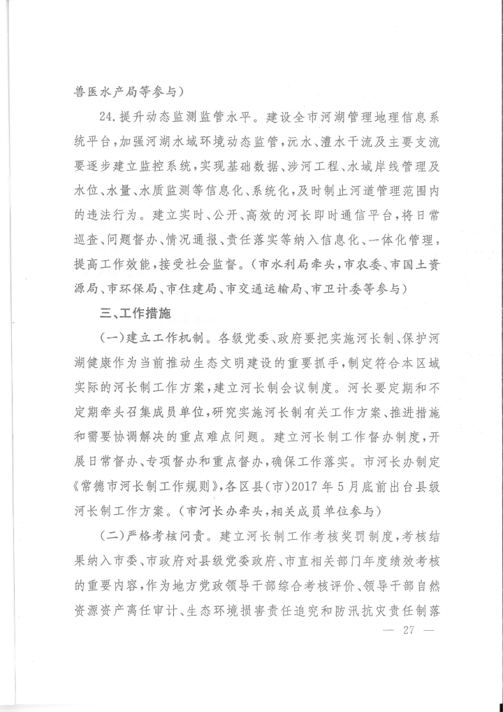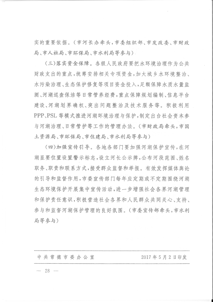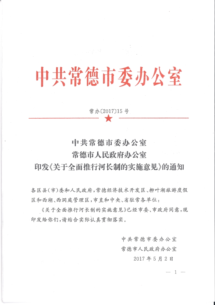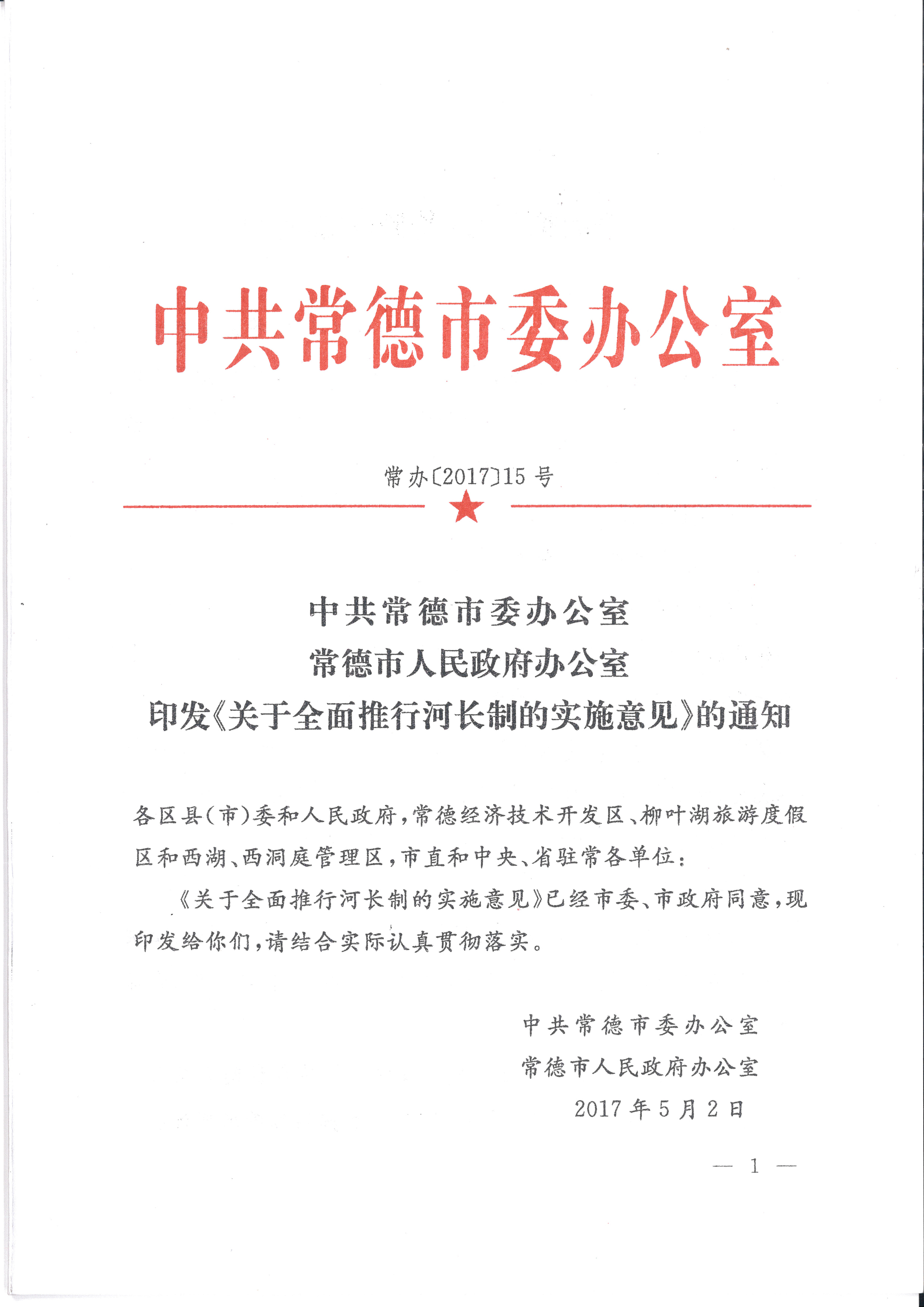 中共常德市委办公室 常德市人民政府办公室印发《关于全面推行河长制的实施意见》的通知